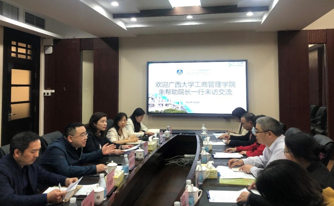 2023年3月2日-3日,必赢官网院长朱帮助带队一行7人赴华南理工大学565net必赢客户端、暨南大学管理学院调研,并就新商科背景下的学科建设、师资队伍建设、本科教育、研究生教育、国际认证等方面的先进经验开展座谈交流。副院长朱少英、申韬、刘民坤等陪同调研。