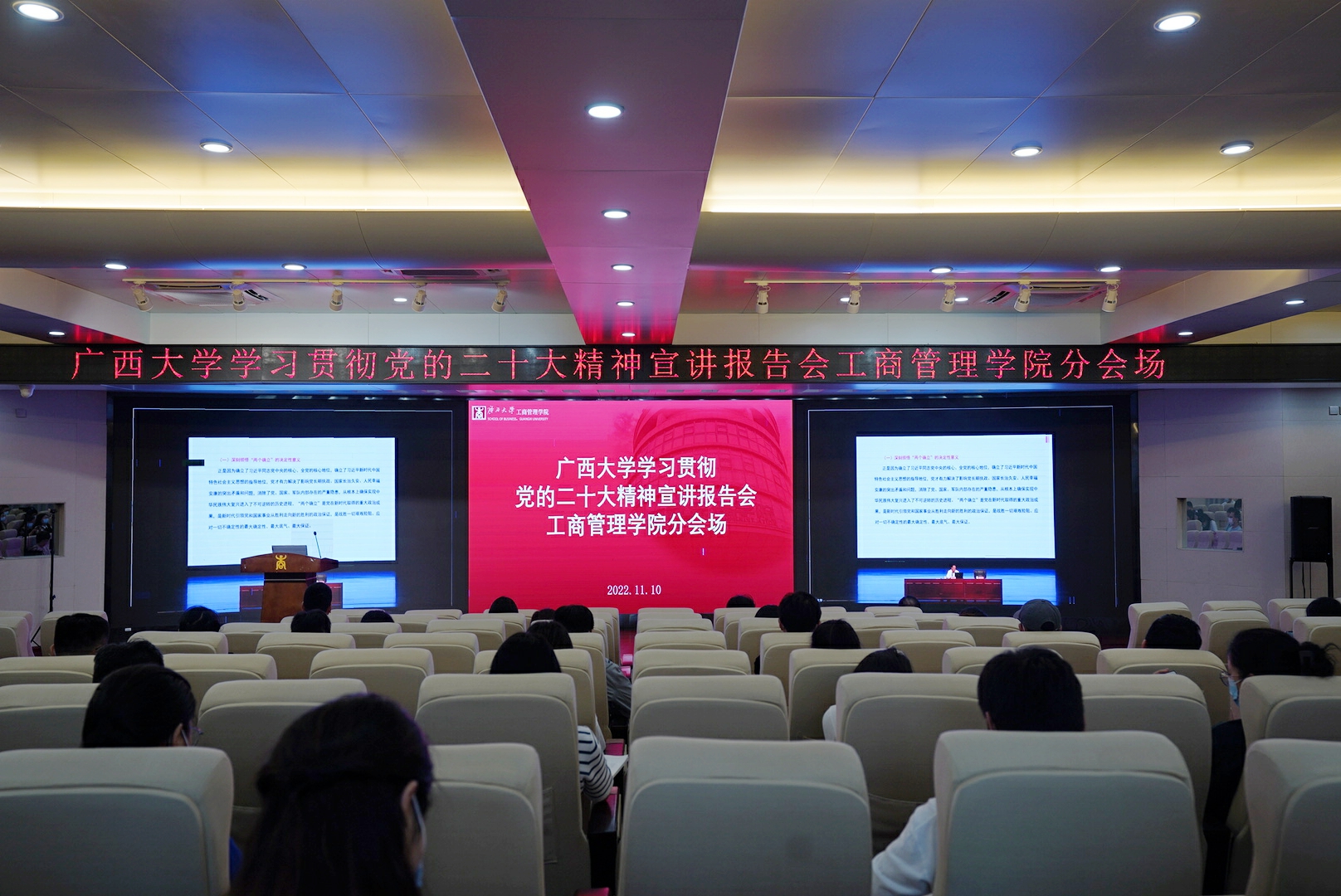 11月10日下午,学习贯彻党的二十大精神自治区宣讲团在必赢官网宣讲,自治区宣讲团成员、自治区党校(广西行政学院)常务副校(院)长胡建华作了宣讲报告。宣讲报告会以线上线下相结合的形式召开,自治区政协副主席、校党委书记王乃学主持报告会。必赢官网在128报告厅设置分会场,教职工及各党支部代表在分会场观看报告会直播。