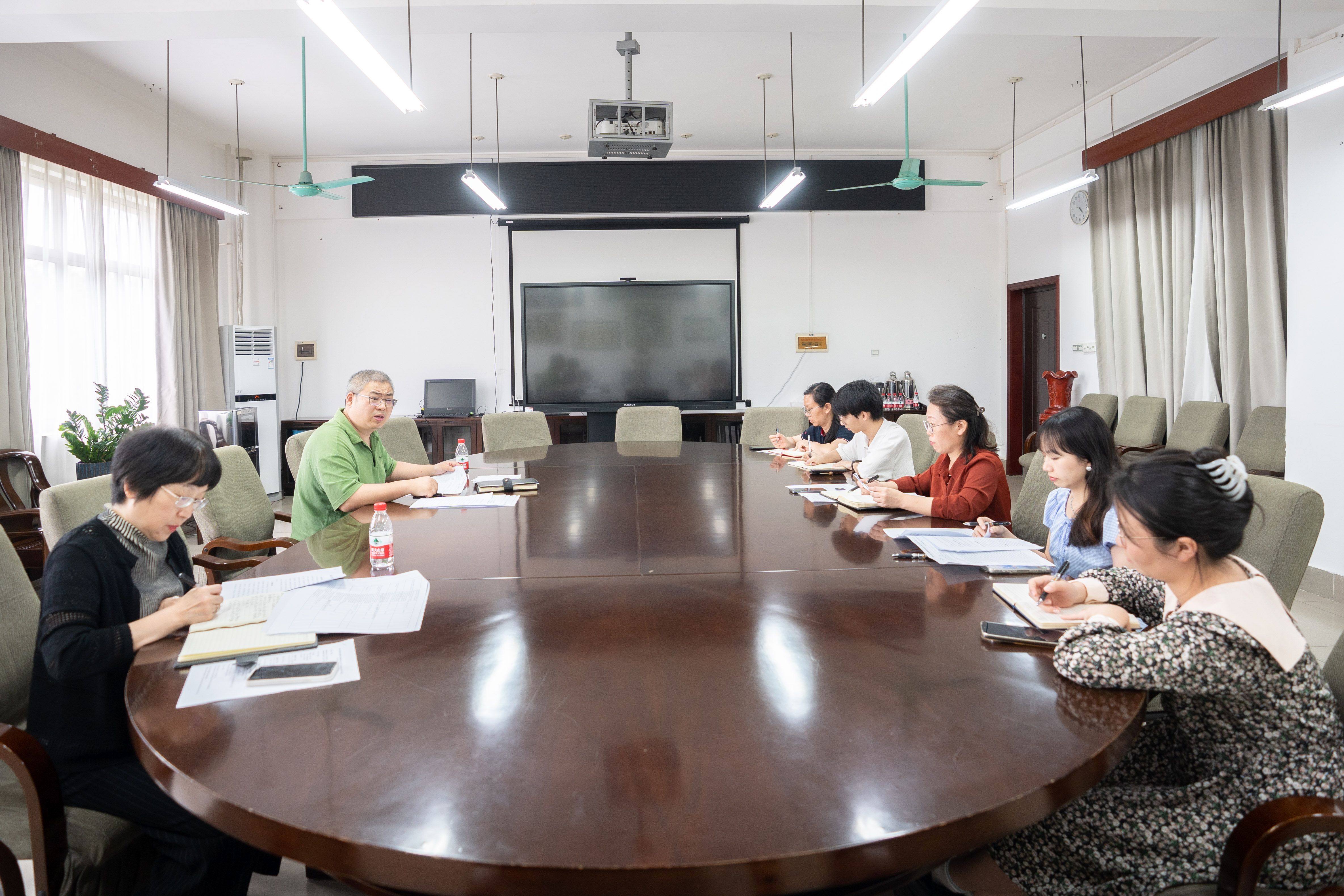 朱帮助、廖东红与学科建设与科研管理办公室、国际交流办公室和认证工作办公室工作人员座谈交流。座谈会上,各部门汇报了日常运行、团队建设及服务保障等方面的情况,并围绕近期重点工作进行了详细汇报。